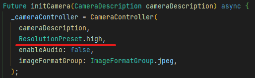 위의 코드를 보면 카메라 컨트롤러의 인스턴스를 생성할때 입력할 수 있는 파라미터중 ResolutionPreset 이 있는데 이는, 다음과 같이 정의 되어있다.