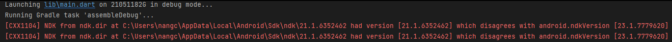 메세지를 읽어보니 complie 할때 필요한 ndk 버전이 23.1.7779620 인 것을 메세지를 톻해 알 수 있다. 이 ndk 버전이 내 컴퓨터에 있는지 확인해보자.