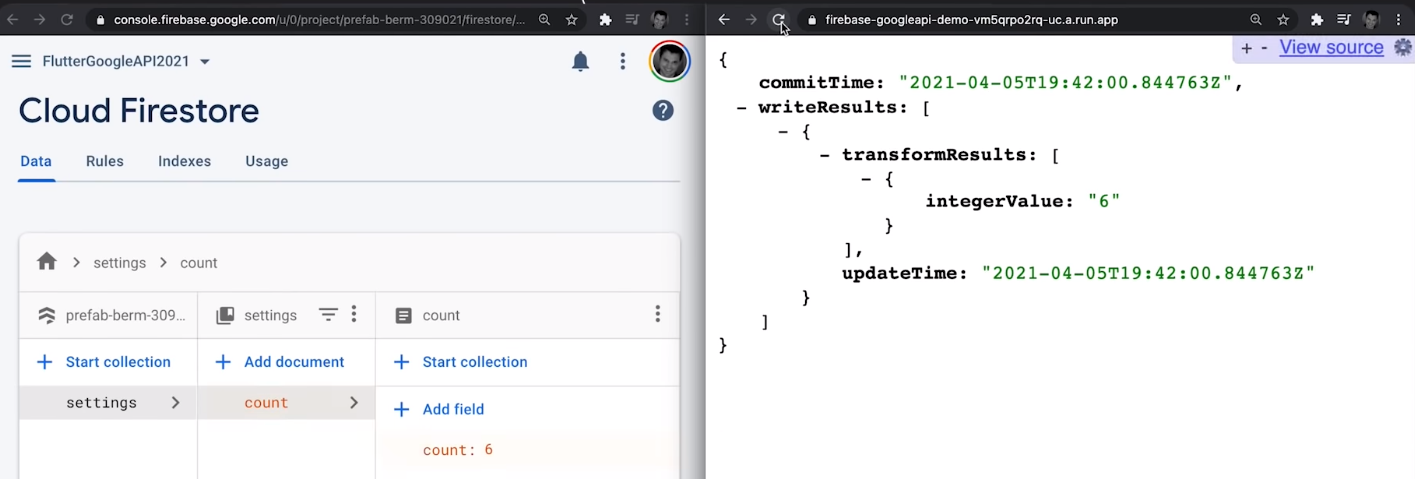 ● Cloud Run에서 돌아가고 있는 Dart service에서 Cloud Firestore 사용하는 예