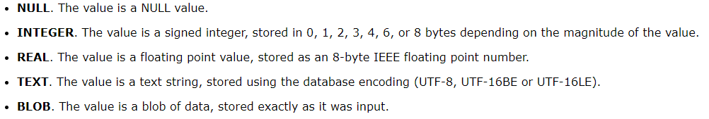 Sql DB에 자료를 저장하려면 아래와 같은 타입들이 가능하다. (자료링크)