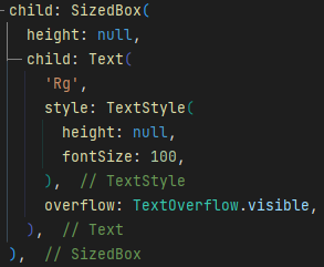 이때 Text위젯을 감싸는 위젯의 높이(height)가 지정되어있지 않을때 자신의 child, 지금의 경우 Text 위젯의 크기를 따르게 된다. 만약 Text 위젯도 높이(height)가 정해져 있지 않을 경우 Text Widget은 표시할 text의 크기에 비례해서 커지게 된다.