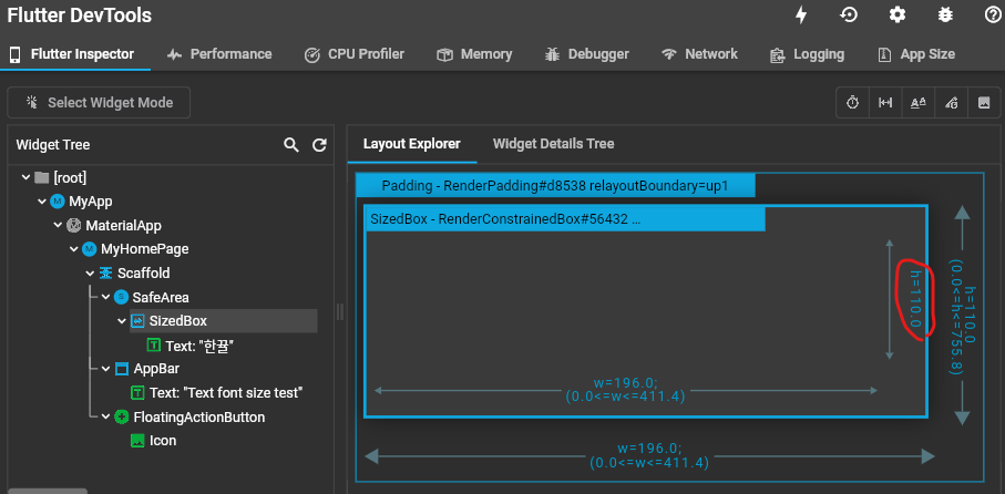 SizedBox의 height는 아래 사진과 같이 Flutter Dev tool의 Flutter Inspector를 이용해서 확인했다.